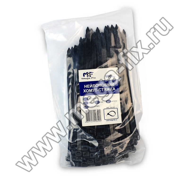 Хомут нейлоновый MGF 3,6х300 мм черного цвета (100 шт./ уп.) mega-fix